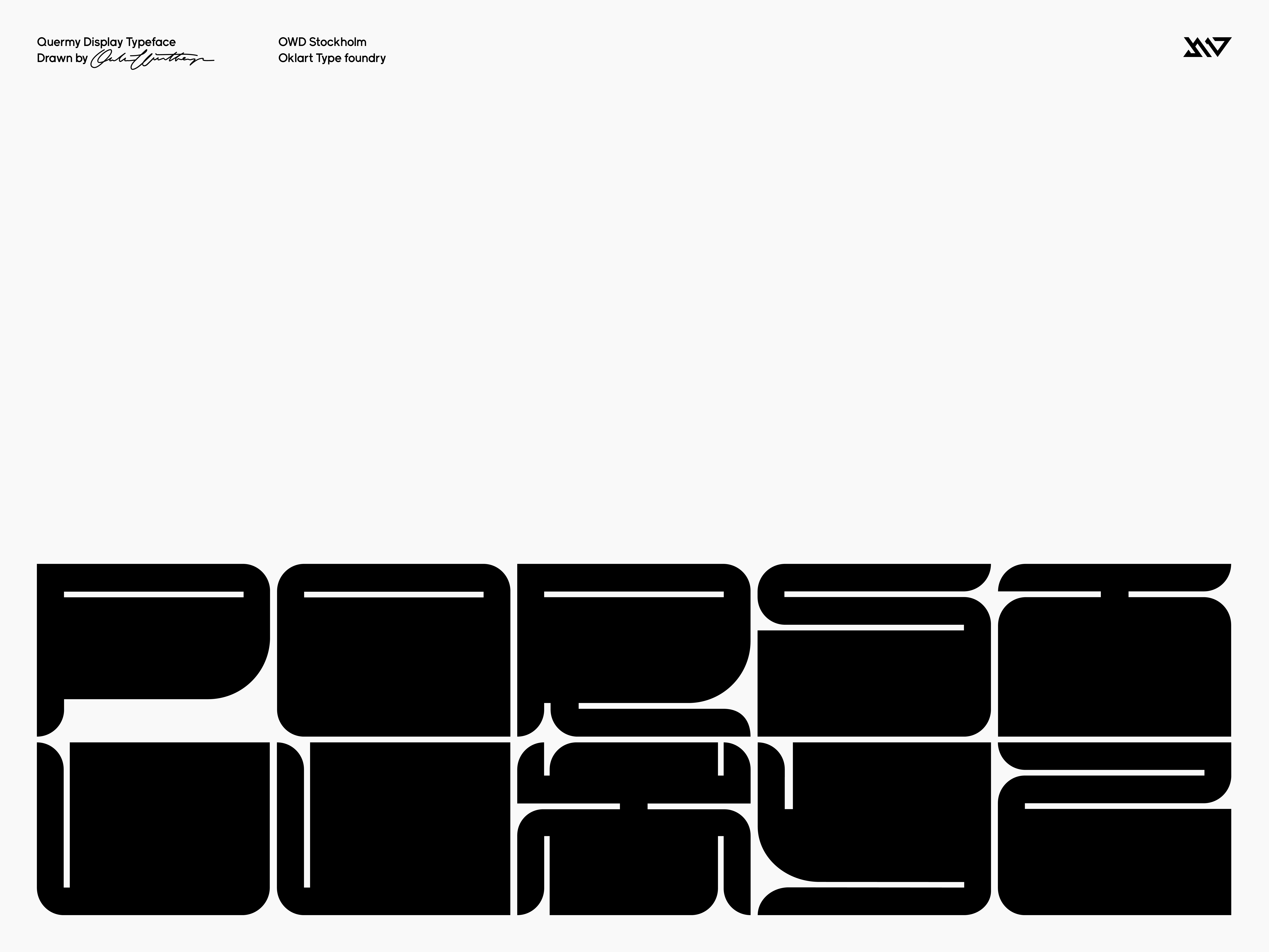 Quermy Display is a one-of-a-kind experimental display font that prioritizes expression over legibility. This limited edition typeface was designed to feel otherworldly and unfamiliar upon first glance, but upon closer inspection reveals itself to be surprisingly easy to read. While it may challenge the viewer's expectations of what a typeface should be, Quermy Display rewards those who take the time to engage with it.