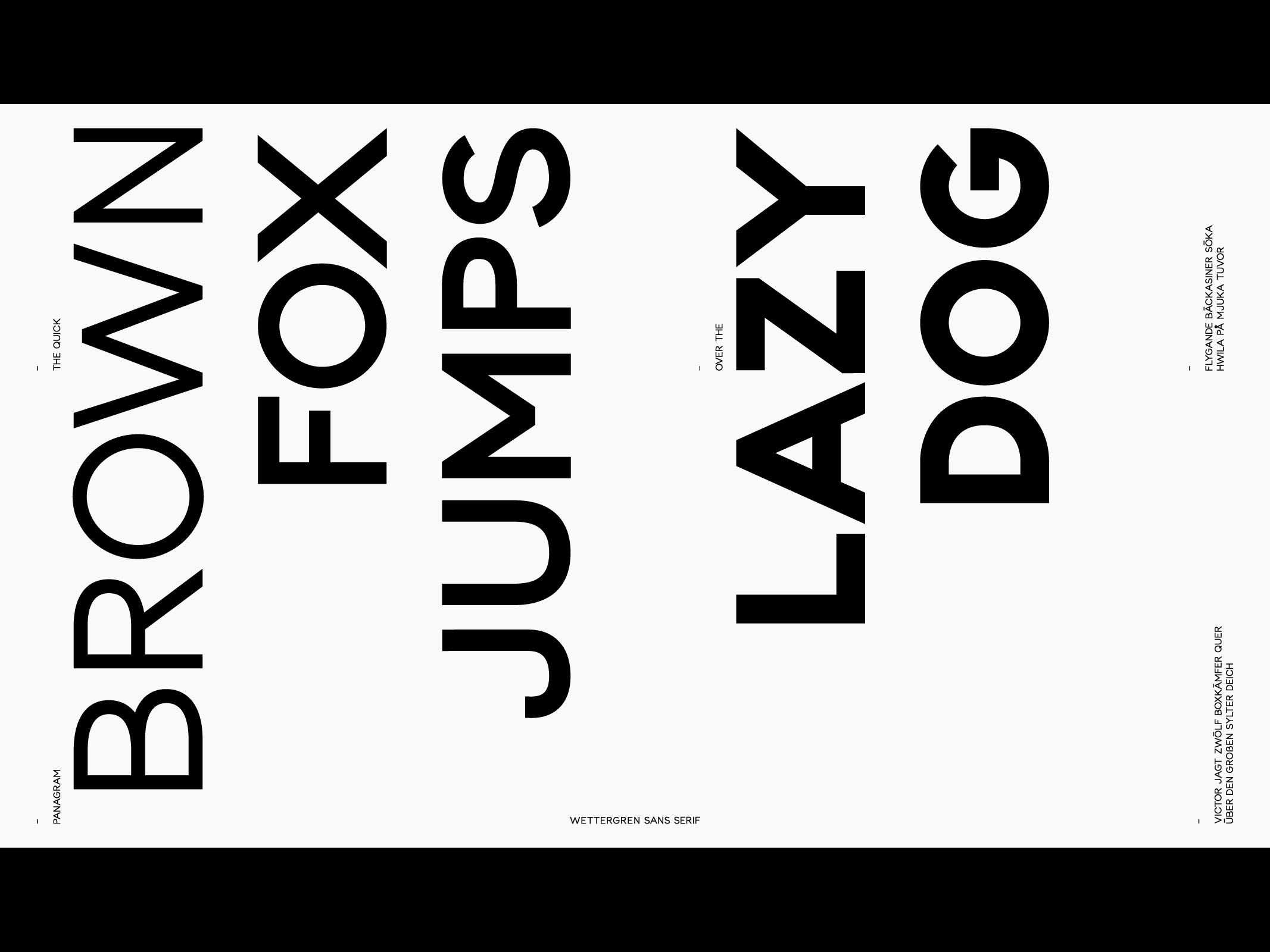 Wettergen Sans is a modern nostalgic typeface with anagressively kind demeanour. It comes in five different weights, all caps, with symbols and ÜßÅÄÖ.